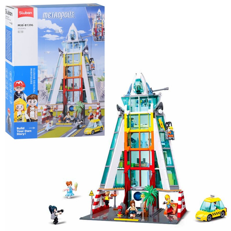 Конструктор SLUBAN M38-B1396 (4шт) міська серія, будівля 47,8см, фігурки, машина, 1131дет, в кор-ці, 42,5-62-12,5см