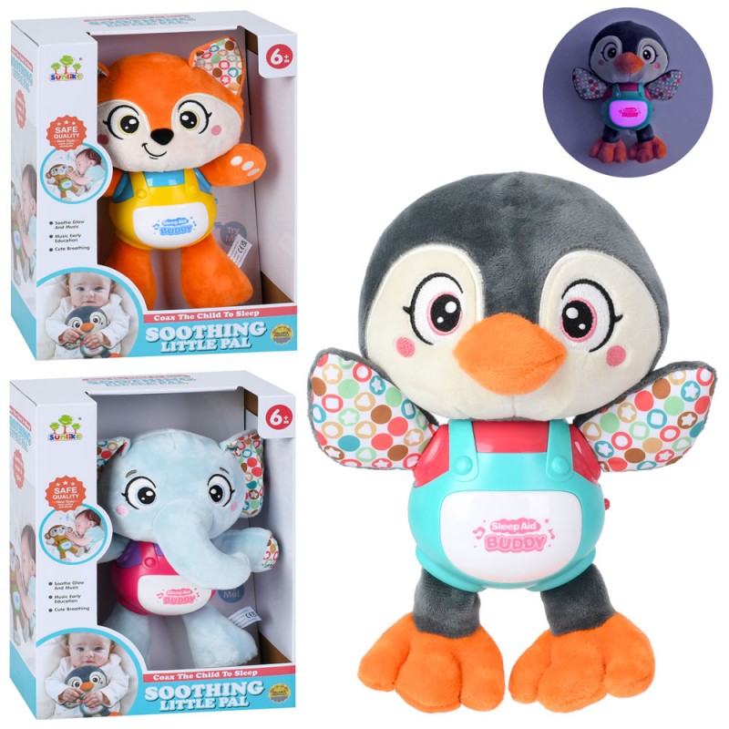 Гра SL88075-77-78 (24шт) тварина, 23см, музика, світло, плюш+пластик,3 види (пінгвін, лисичка, слон), на бат-ці, в кор-ці, 22-30-10,5см