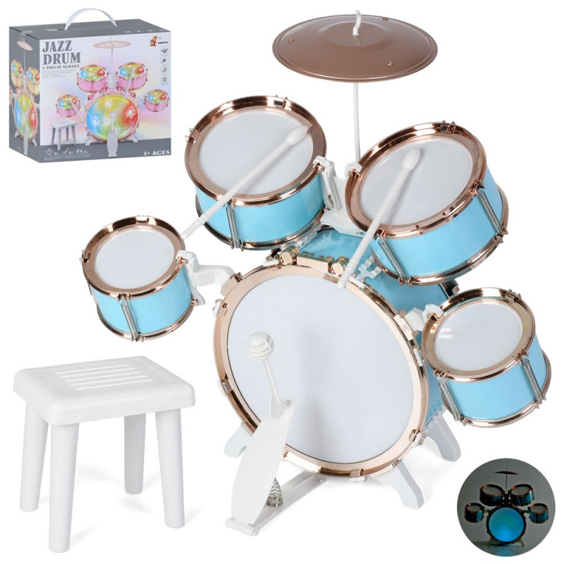 Барабан DXBL880-2 (12шт) 5шт, барабанна установка, 51-21-в52см, стільчик 20-15-в20см, світло, на бат-ці, в кор-ці, 29,5-29,5-17см