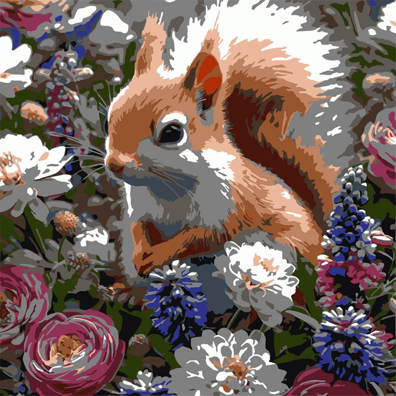 Картина за номерами Strateg Білка серед квітів 30х30 (ES-0912)