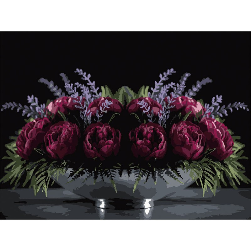 Картина за номерами Strateg Квітковий настрій на чорному фоні 30Х40 (FH-38)