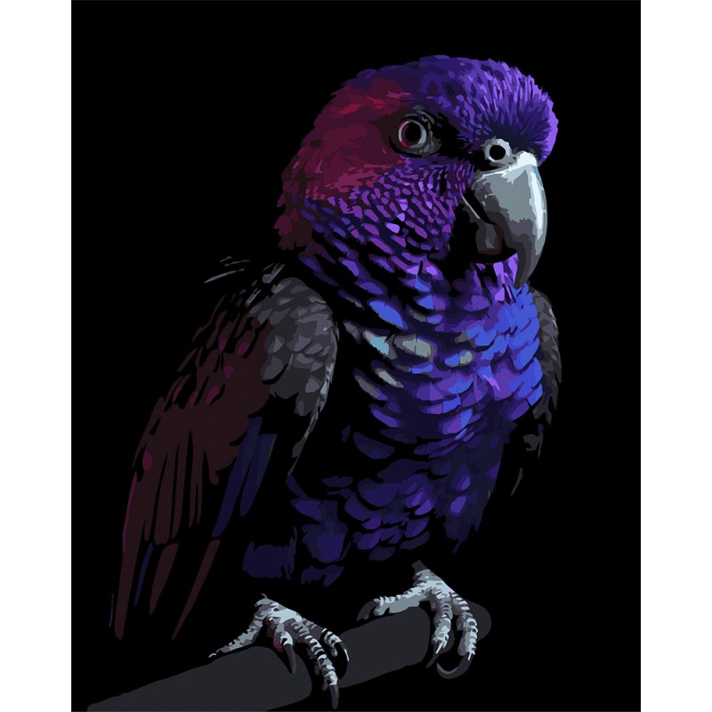 Картина за номерами Strateg Яскравий папуга на чорному фоні 40Х50 (AH1281)