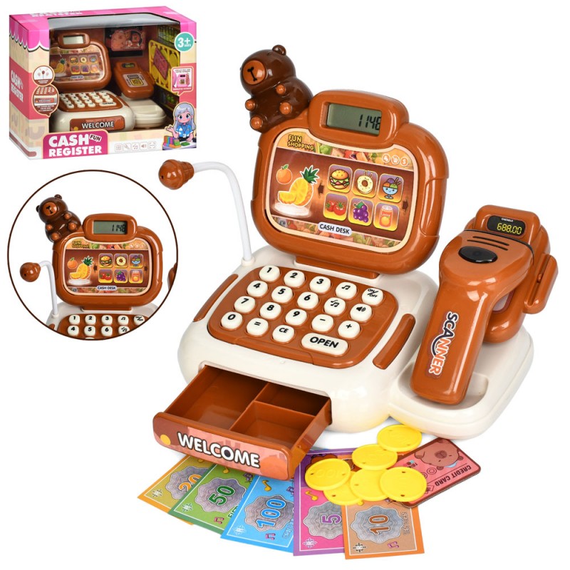 Касовий апарат R999-23A (20шт) капібара, термінал, калькулятор, сканер, мікрофон, гроші, звук, на бат-ці, в кор-ці, 26,5-20,5-17см