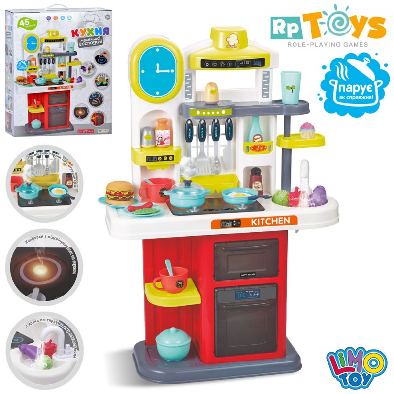 Кухня 16911A (6шт) 51-20-в76см, плита, пара, звук,світло, духовка, мийка-ллється вода(механ), посуд,продукти, 45пр, на бат-ці, в кор-ці, 42-53-15,5см