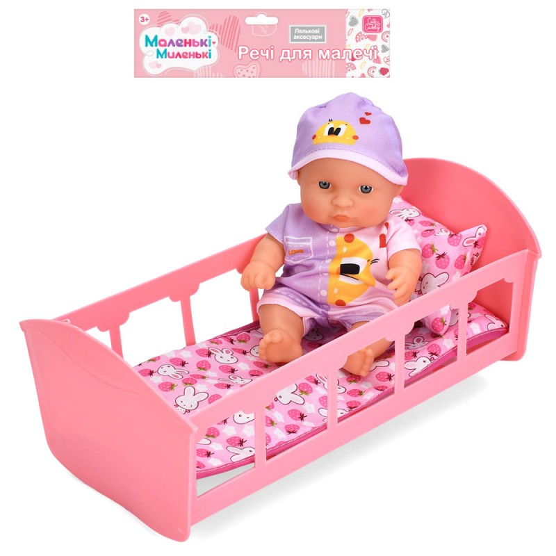 Ліжечко з лялькою C-02 пупс, ліжко, матрас, подушка, кул., 27-39-13,5 см.
