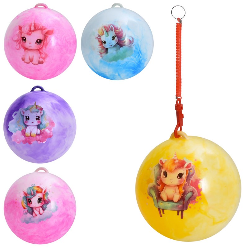М'яч дитячий MS 4908 9 дюймів, 60г, ручка (пружина), принт-єдиноріг, мікс видів/4 кольори