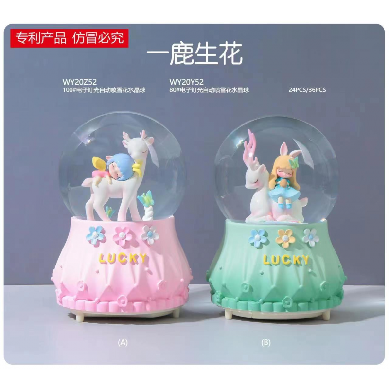 Декоративна куля WY20K52 сніжна куля, Lucky, оленя з дівчинкою, світло, муз.,2 види, бат.,кор