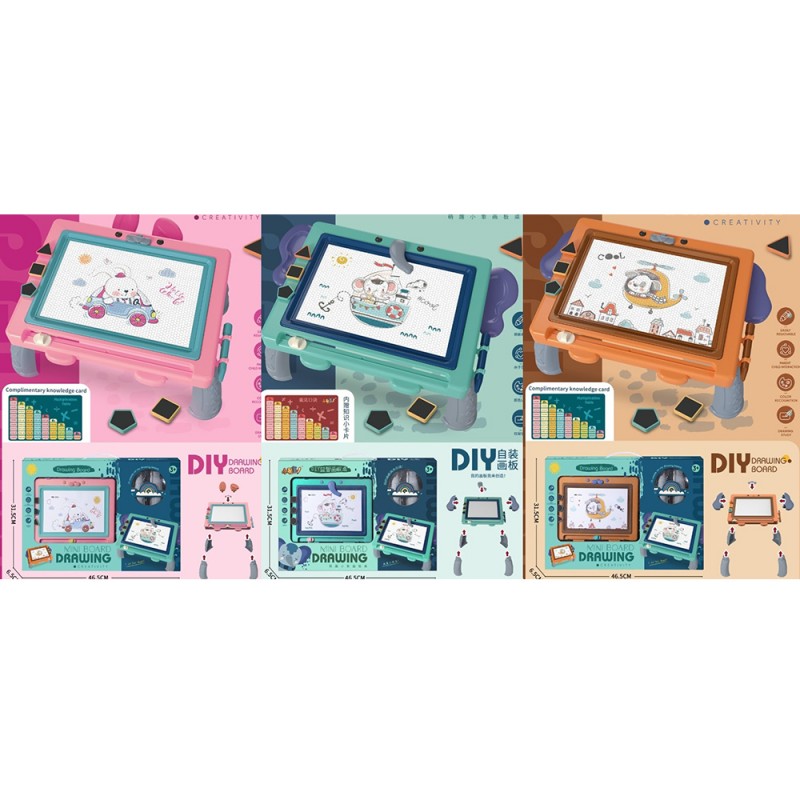 Досточка для малювання 1221-A-B-C кольорова, 2в1(столик 28-22-в14,5см), печатки 3шт, 3 види, кор.