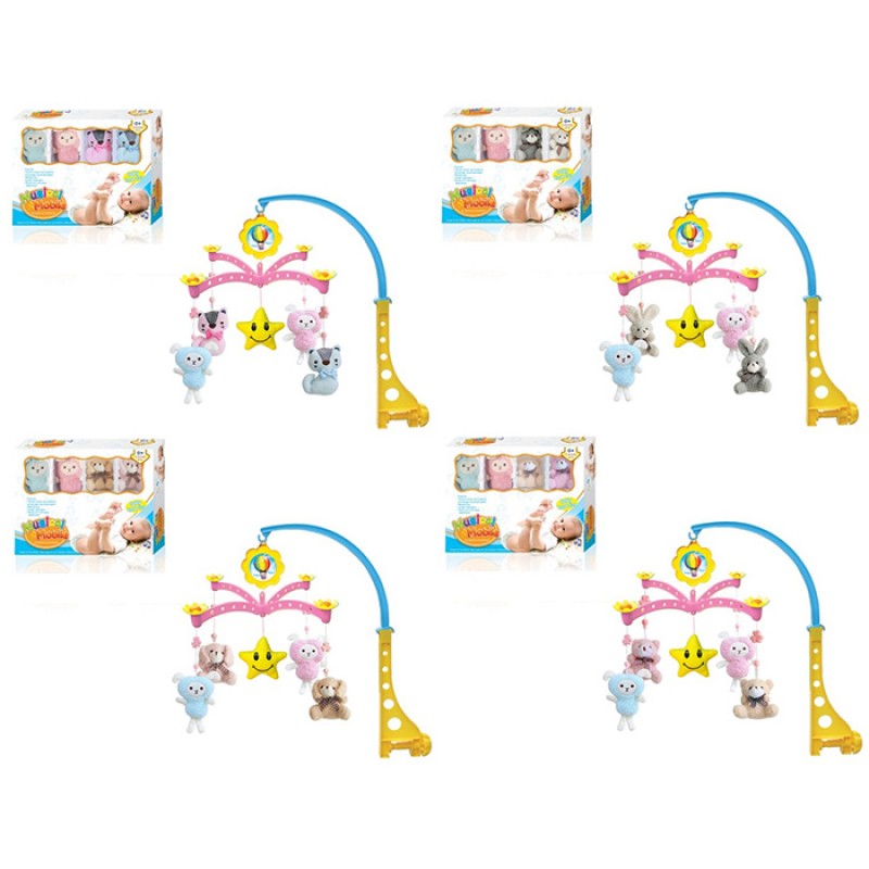 Карусель на кроватку XQT732-3-4-5 (12шт) мобіль на ліжко, заводна, музика, підвіски 5шт (плюш), 4 види, в кор-ці, 32,5-25-7см