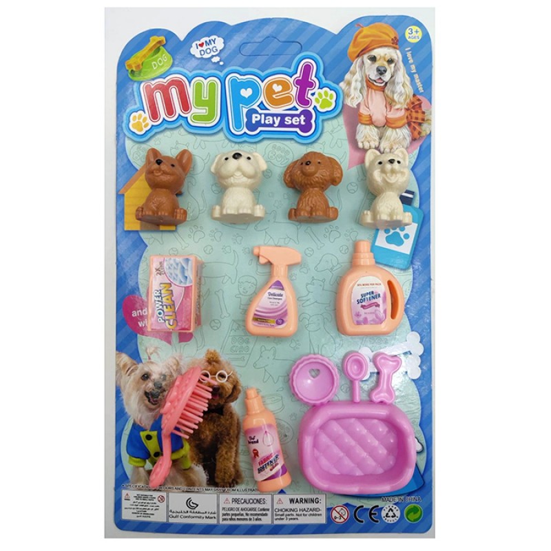 Фігурки для гри 999B-2 (224шт) набір тварин 4шт(собака) 4см, аксесуари, на листі, 15,5-25-3см