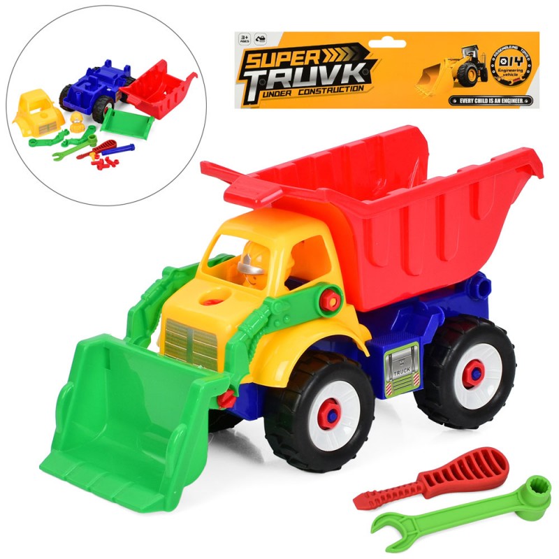 Конструктор 5435-2 на шурупах, самоскид+бульдозер, 28см, викрутка, гай ключ,кул.