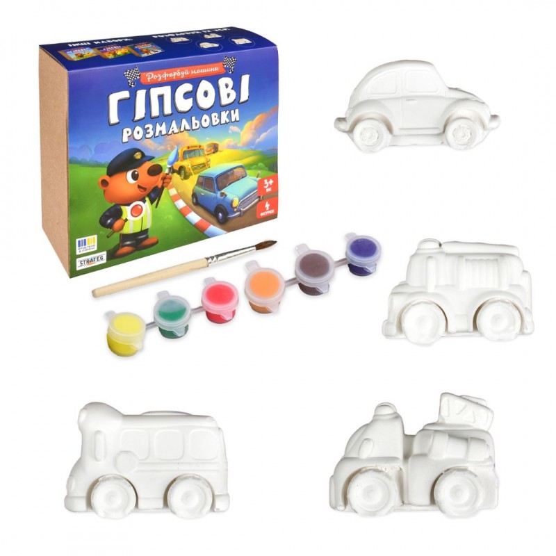 Набір для творчості Strateg Гіпсові розмальовки: розфарбуй машини (31038)