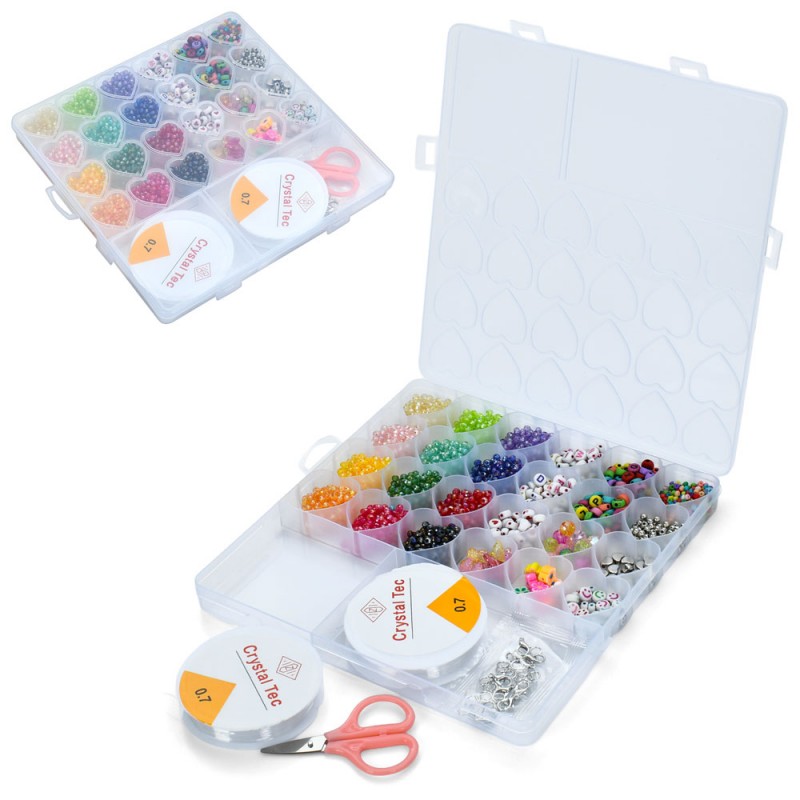 Бісер A103-13K (60шт) намистини-англ.літери, паєтки, ножиці, у пеналі, 20-20-2см