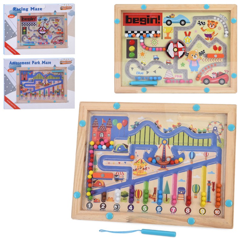 Дерев'яна іграшка Лабіринт MD 0753 (48шт) магнітний, ігрове поле 28,5-21,5см, кульки, 2 види, у кор-ці, 29,5-22,5-2см