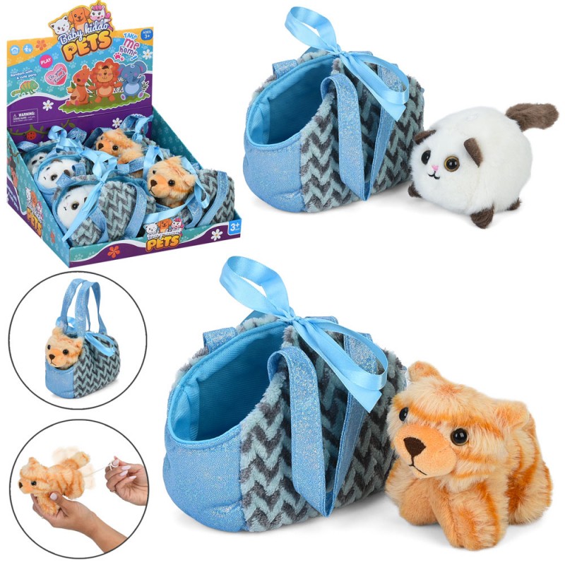 Тварина 7622-122-24 (54шт) 14см, заводна, рухливий хвіст, звук(пискавка), плюш, 2 види(собака,кіт ), сумка 15см, 6шт в дисплеї, 27-29-14см