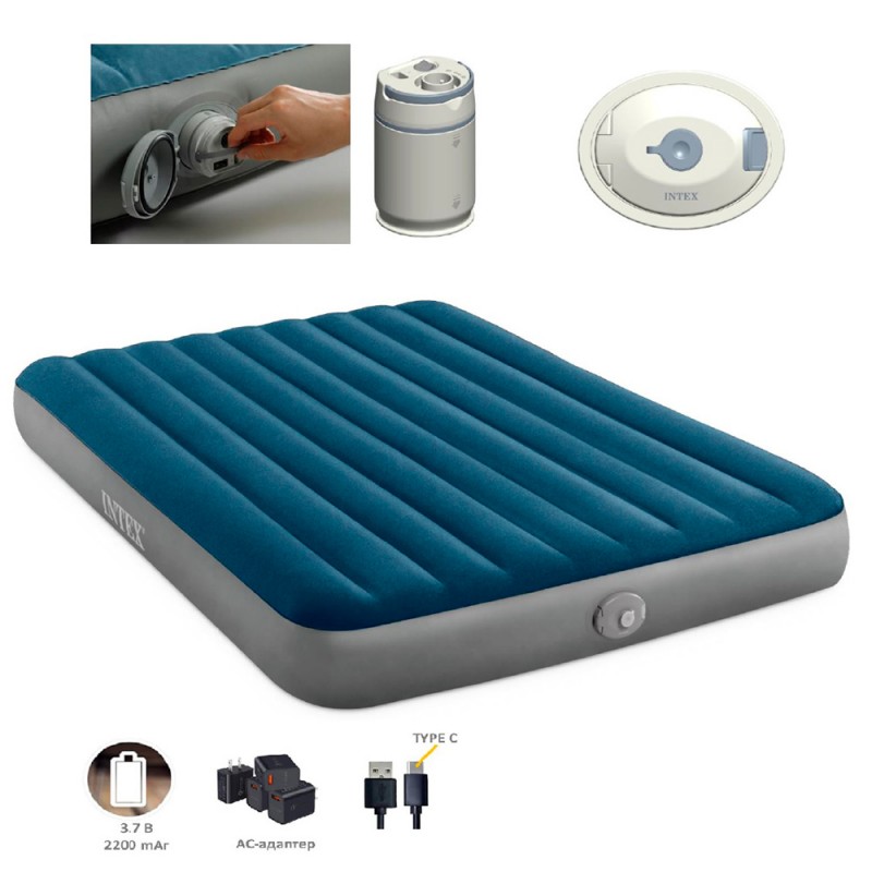 Велюр матрац 64189 (2шт) надувний, 152х203х25см, двомісний, вбудований насос (з літій-іонним акумулятором), USB