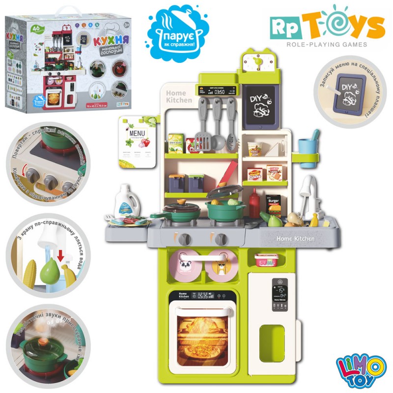 Кухня WD-815B 70-45-70,5см,плита,звук,світло,пара,духовка,мийка-ллється вода,46дет.,бат.кор.45-36-17