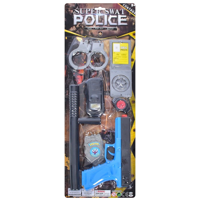 Набір зі зброєю 2327 (72шт) 7 предметів (пістолет 22см, палиця, рація, наручники, значок), на листі, 58-21-3см