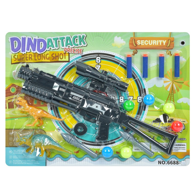 Автомат 6688-45 (48шт) 42см, приціл, кульки 6шт, м'які пулі-присоски 4шт, динозаври 2шт 13см, на листі, 46-35-4см