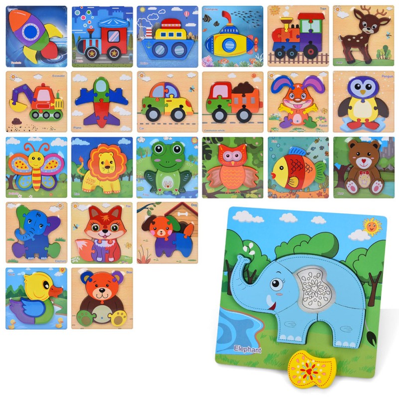Дерев'яна іграшка Пазли MD 0776 (50шт) від 4дет, 24 види (транспорт, тварини, птахи, метелик), у пакеті, 14,5-14,5-1см