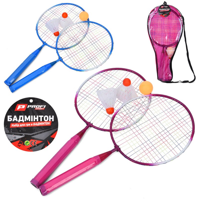 Бадмінтон MS 4397-2 (50шт) ракета 2шт, 43,5см, метал, дерев'яна ручка, воланчик 2шт, м'ячик 4см, 2кольори, у чохлі, 22-49-3см