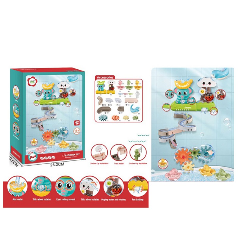 Гра для купання 6688-918 (8шт) водоспад, слон, хмаринка, лабіринт, присоски, динозаври, морські мешканці, 42дет, в кор-ці, 26-36,5-10,5см