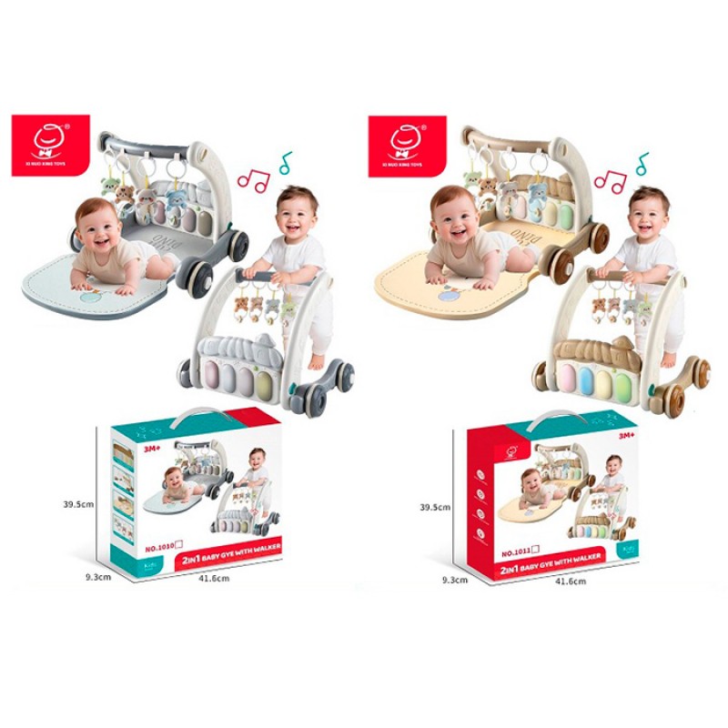 Каталка-ходунки 1010-1011 (8шт) 34,5-46,5-в37см, 2в1(килимок для немовляти 71-46см), підвіски 4шт, піаніно-музика, світло, 2 кольори, на бат-ці, в кор-ці, 41,5-39,5-9,5см