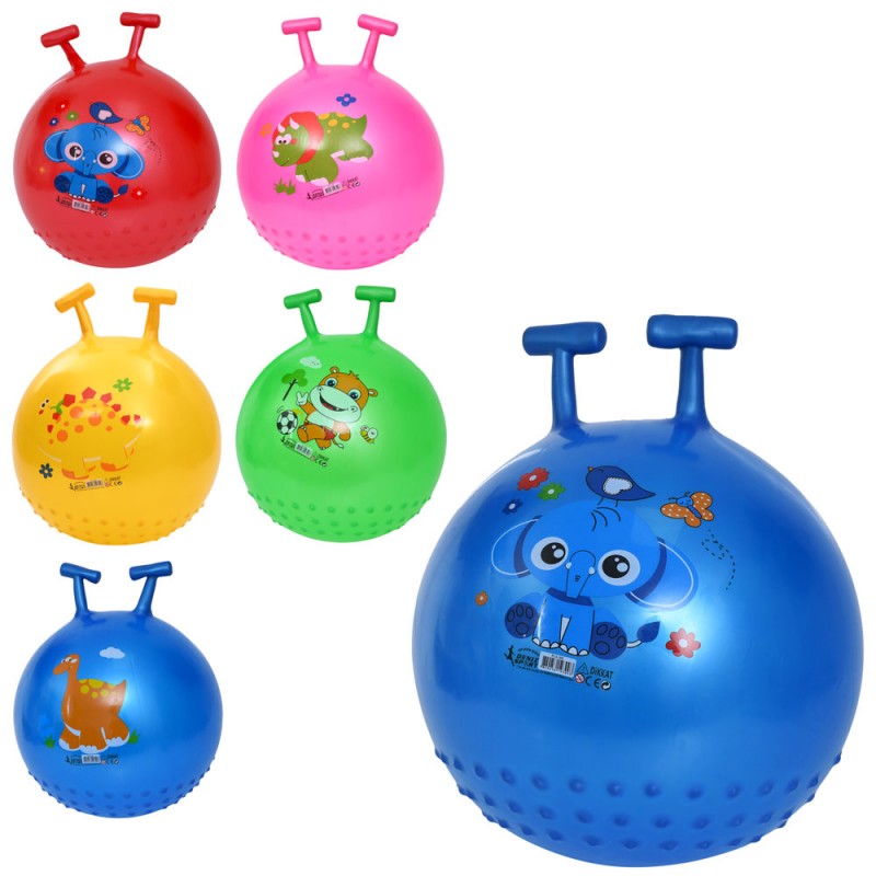 М'яч для фітнесу MS 4873 (40шт) 45см, з ріжками, 370-380г, 5 кольорів/мікс видів (тварина, динозавр), у пакеті, 16-18-6см