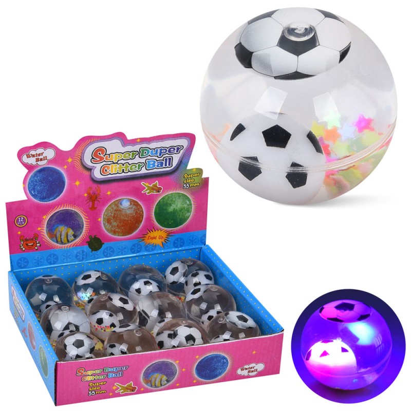 Стрибуни MS 4879 водяні, м'яч, світло,5,5см, мішура, бат(табл), 12шт дисплей