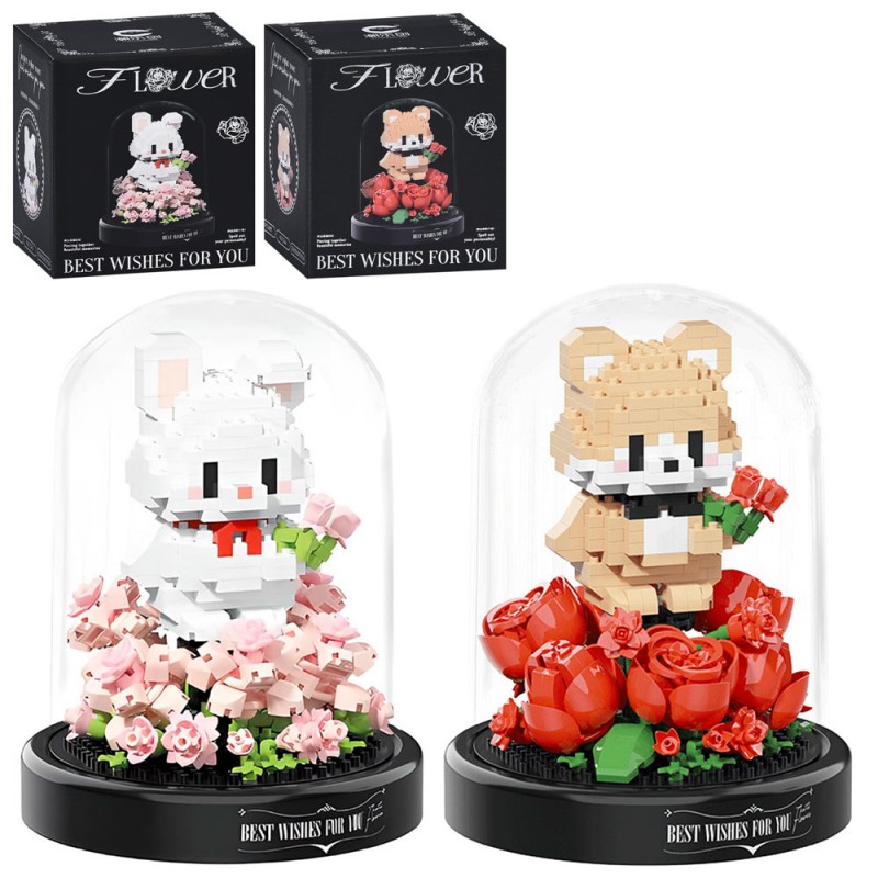 Конструктор 7243-7244 (30шт) тварина у квітах, колба, 10,6-10,6-13,7см, 2 види (687дет, 692дет), у кор-ці, 13-16-13