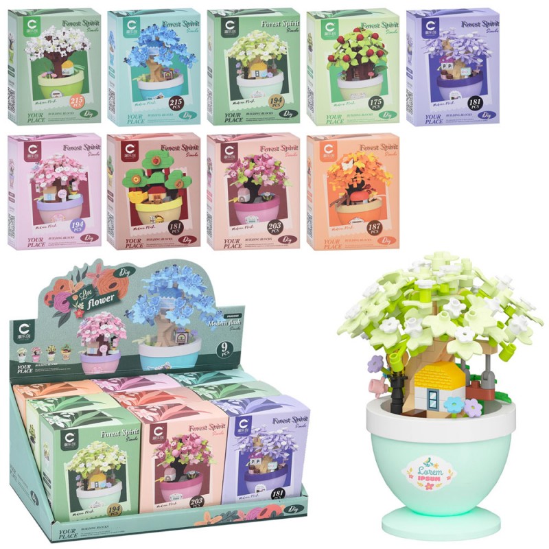 Конструктор 7453-7461 (144шт) дерево+будиночок у горщику, від 175дет, в кор-ці, 9шт(9видів) в дисплеї, 28,5-13-15,5см