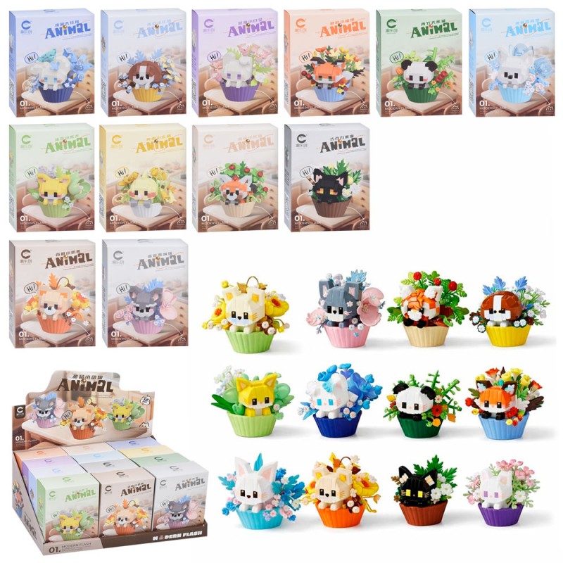 Конструктор 7492-7503тварина з квітами у горщику,від 215дет,12шт(12видів)у дисп.28,5-12,5-20см