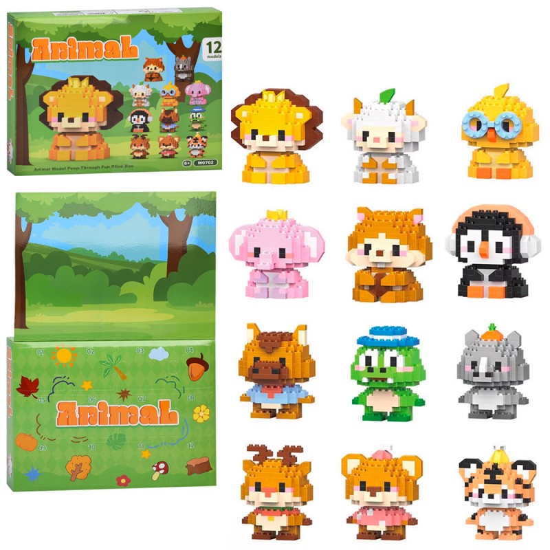 Конструктор W0702дикі тварини, 12шт, адвент-календар, в кор-ці, 29,5-22,5-5см
