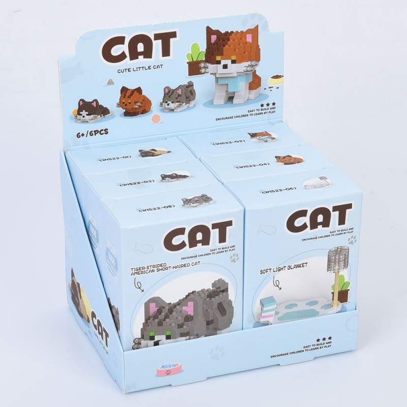 Конструктор W1522 (288шт) кіт, від 151дет, 6видів (1вид-килимок), в кор-ці, 6шт в дисплеї, 16,5-11,5-13см