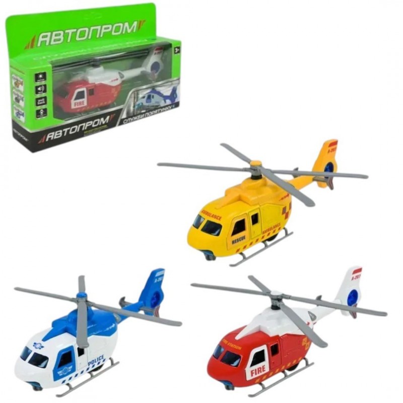 Іграшка вертолiт мет. АВТОПРОМ арт. AP7541,3 види, відкр.двері батар.,світло,звук,у короб.24,5*15*5,5см