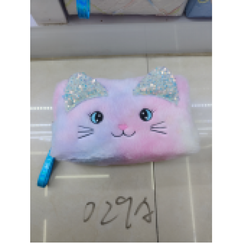 Косметичка FG250723029A кіт, плюш, коротка ручка, застібка-блискавка, 6 видів, кул.