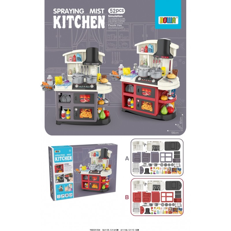 Кухня 8775 плита, духовка, посуд, продукти, муз., світло, пара, 2 кольори, бат., кор., 47-61-13,5см.