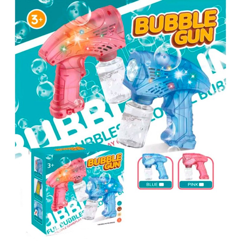 Мильні бульбашки 113 (60шт) пістолет 14см, світло, запаска 7-4см, 2 кольори, на бат-ці, в кор-ці, 14,5-14,5-5,5см