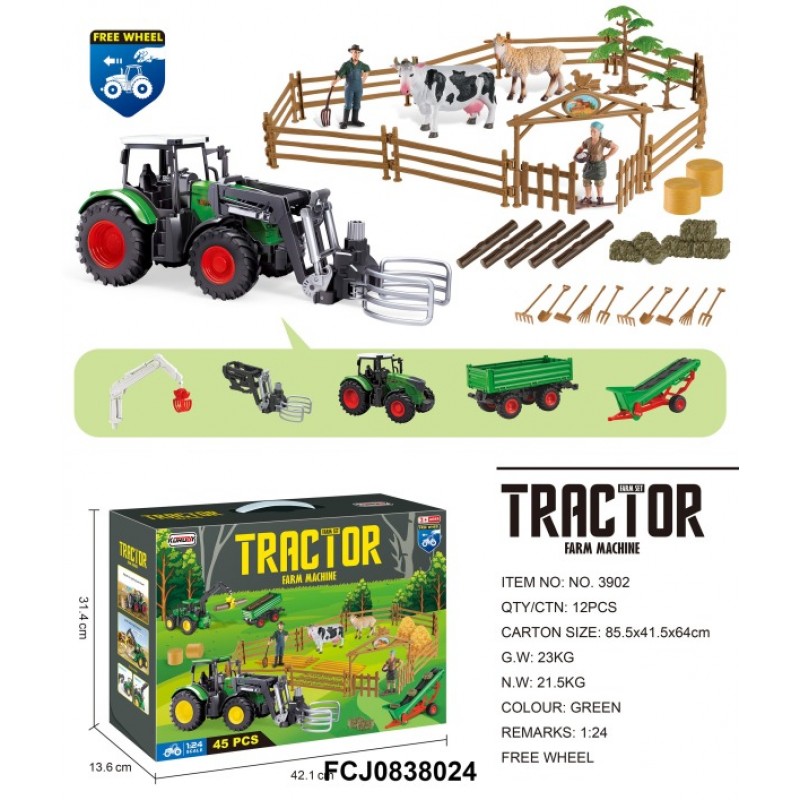 Фермерський набір 3902 трактор, інерц.,причепи 2шт,1:24,фігурка,тварини 2шт,паркан,садові інстр.,кор