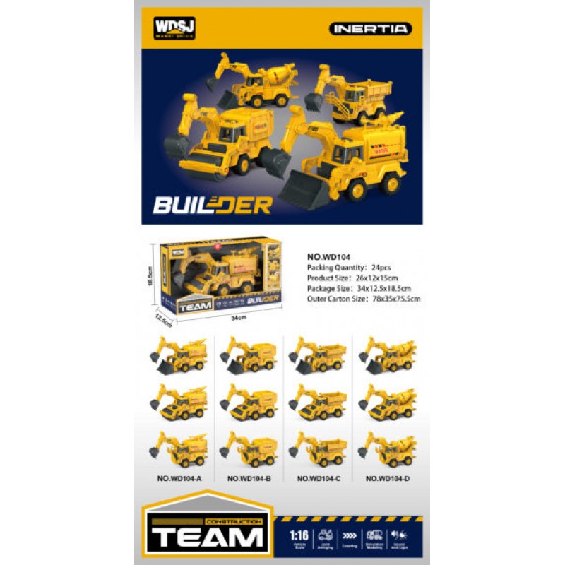 Спецтехніка WD104-C інерц, самоскид+екскаватор,рух.дет.,гум.колеса,3 види,муз., світло,бат.,кор.,34