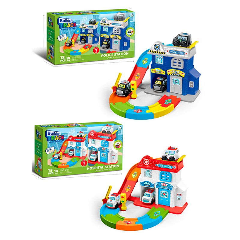 Гараж 099-6A-6B (12шт) 2 поверхи, 35-46,5-в24,5см, машинка, 13дет, 2 види (поліція, лікарня), в кор-ці, 47-26,5-13,5см