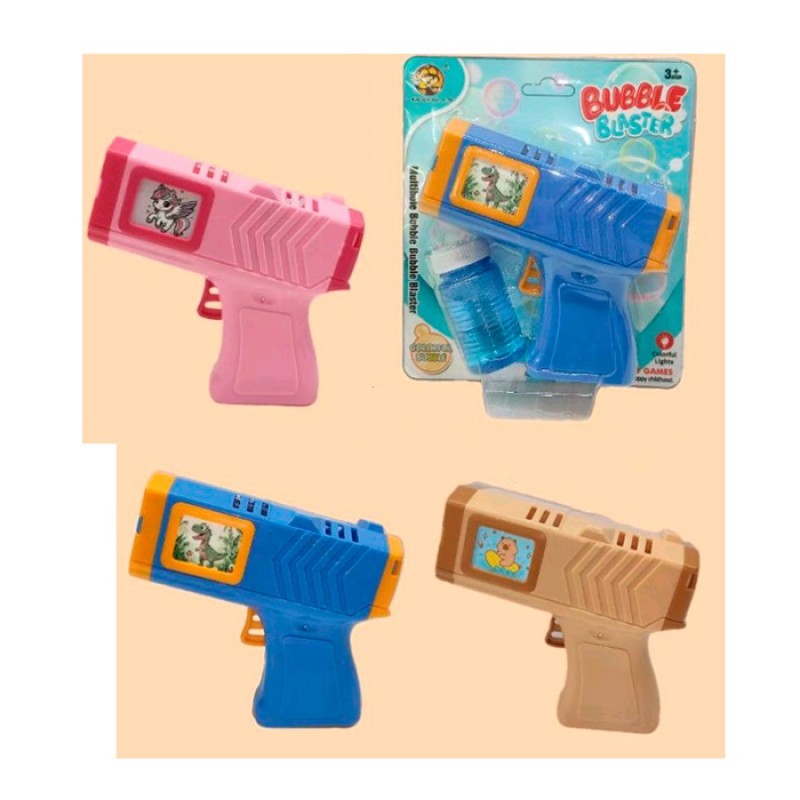 Мильні бульбашки MY264-1 (36шт) пістолет, 14см, світло, запаска 7-3,5см, 3види/3 кольори, на бат-ці, на листі, 16,5-19-6см