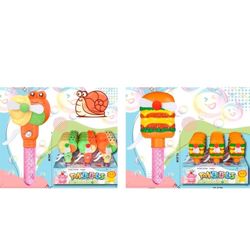 Мильні бульбашки 1986-67-86 (108шт) меч, 20см, ручка-вентилятор, 2 види дисплеїв (равлик, бургер), 12шт(3кольори) в дисплеї, 27,5-20-24см