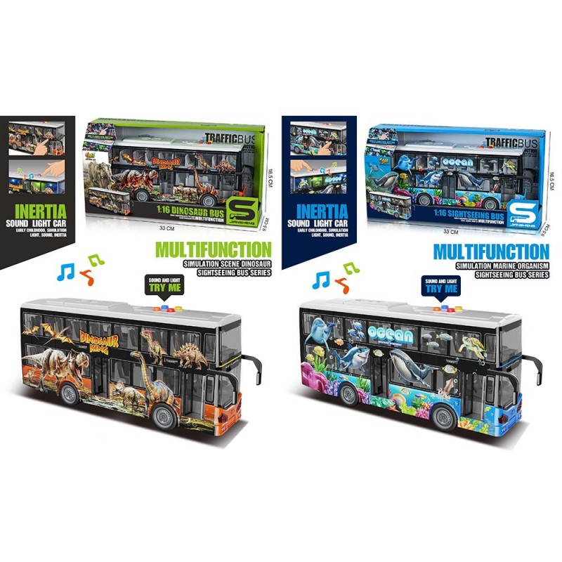 Автобус JS123-BC (12шт) інерція,двоповерховий, 28см, 1:16, відчиняються двері, звук, світло, гум.колеса, 2 види,на бат(табл),в кор-ці, 32,5-16,5-9,5см