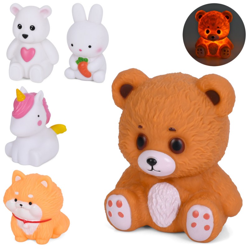 Нічник INT 0036 тварина, світло, від 9-8-7см до 12-7-7см, 5 видів (єдиноріг, заєць,кіт,2 ведм.) кул.