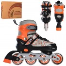 Ролики A 12100-2-M(35-38) (6шт) раздвижн,микс цв,шнур+бакл,алюм.рама,колесаПВХ70мм,1св,сум,40-32-8см