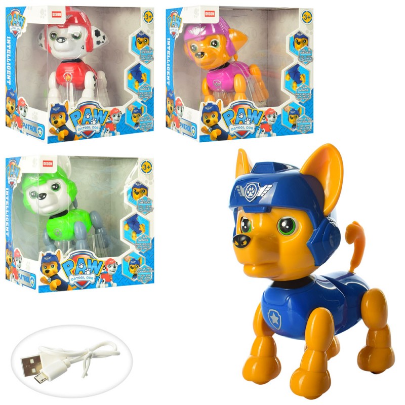 Собака W5599-3 акум., танцює, рухомі деталі, USB, 4 види, муз. (англ.), кор., 16-16,5-10 см.