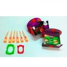 із них 12 карток-пазлів зі знімними внутрішними колами і зображенням звірів;