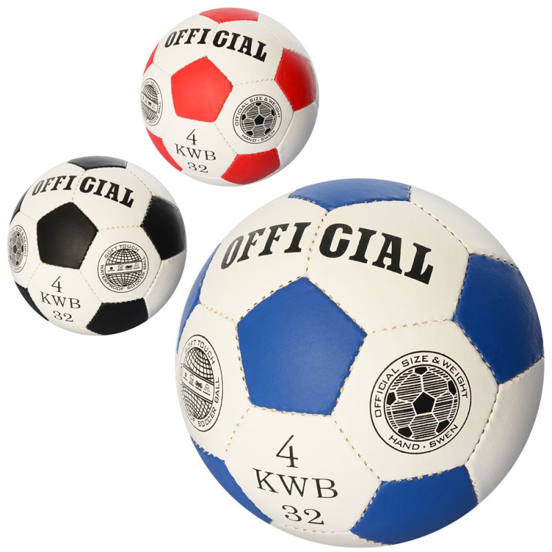 М'яч футбольний OFFICIAL 2501-22 розмір 4, ПУ, 32 панелі, ручна работа, 280-310г,3 кольори,кул.