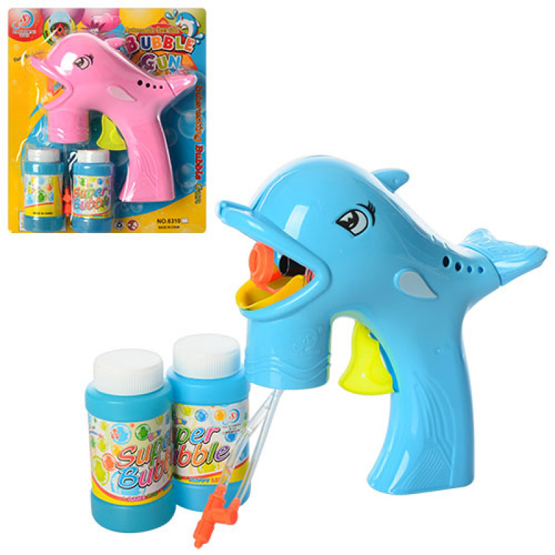 Мыльные пузыри 6310A (72шт) пистолет-дельфин, запаска 55мл 2шт, 2цвета, на листе, 21-23,5-6см